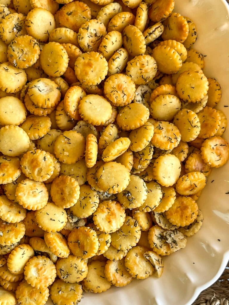 Crispy, buttery crackers baked with ranch seasoning for an addictively snackable bite.