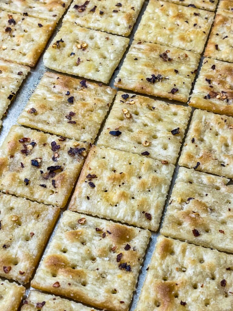 Alabama Fire Crackers are a spicy and savory snack made with red pepper flakes, ranch seasoning, and oil, baked on saltine crackers. It’s the perfect party snack!