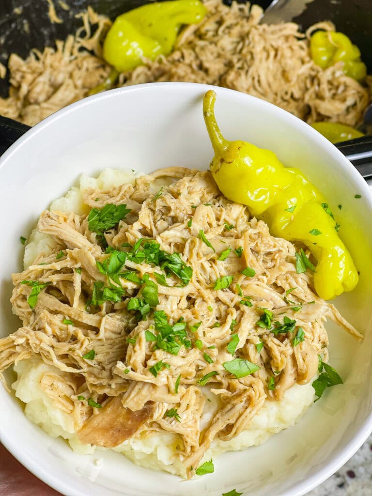 This Crock Pot Mississippi Chicken is all the flavors of the OG, but made with chicken and makes the most delicious sandwich filling.