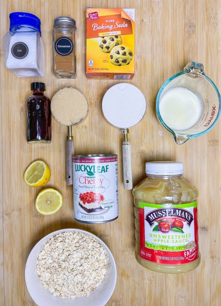 Filling: canned cherry fruit filling, applesauce, and fresh lemon juice for brightness.