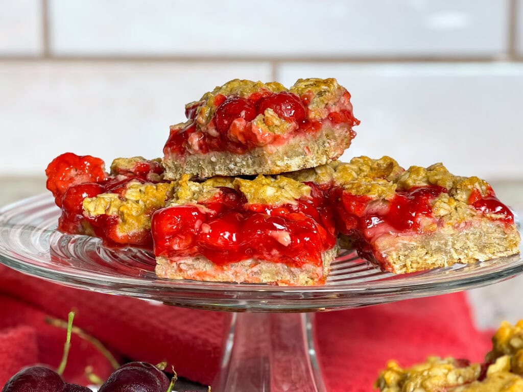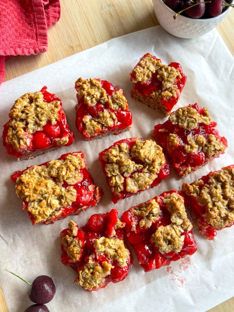 Cherry Apple Oat Bars have a chewy oat crust, sweet-tart cherry apple fruit filling, and a crumbly crunchy oat topping. These bars are perfect for breakfast, brunch, or warm with a side of ice cream for dessert. Plus, they’re easy to make and totally freezer-friendly!
