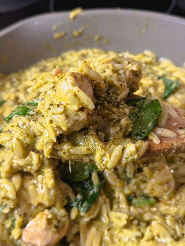 Creamy Pesto Chicken Orzo with Spinach