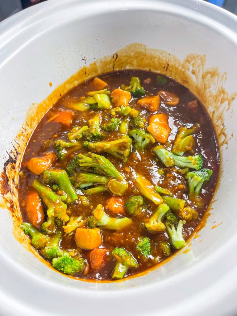 Nope — just add it 15 minutes before the end of cooking, so it stays crisp-tender. If you add it too early, it can get mushy. If using fresh broccoli, add it 40 minutes before the end of cooking. Can I make this with frozen chicken?