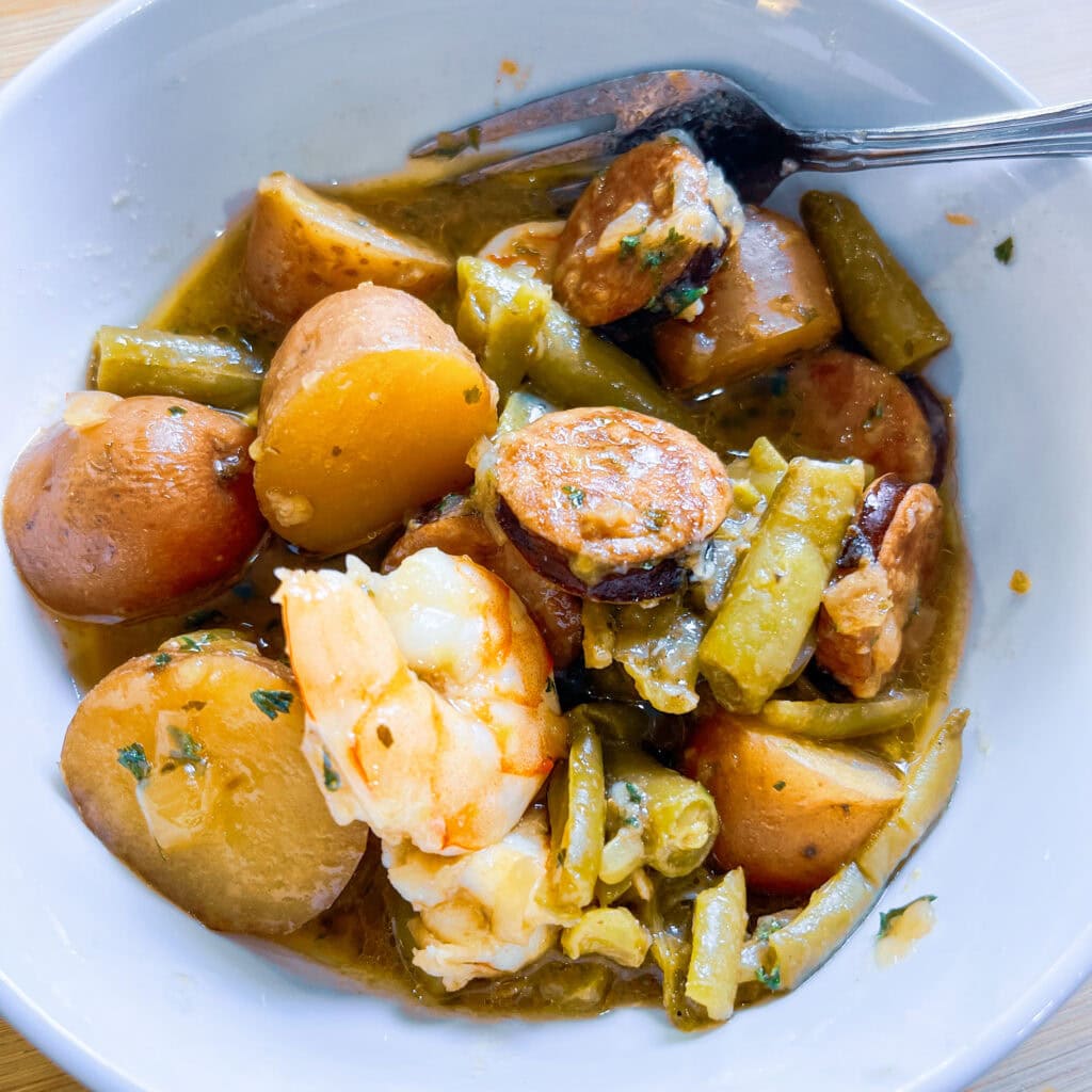 Looking for an easy slow cooker recipe that’s hearty, flavorful, and family-friendly? The viral Crock Pot Swamp Potatoes with Shrimp will not disappoint! This recipe features smoky andouille sausage, tender baby red potatoes, green beans and juicy shrimp in a savory butter sauce with a little kick. You’ll want to make this dinner again and again!