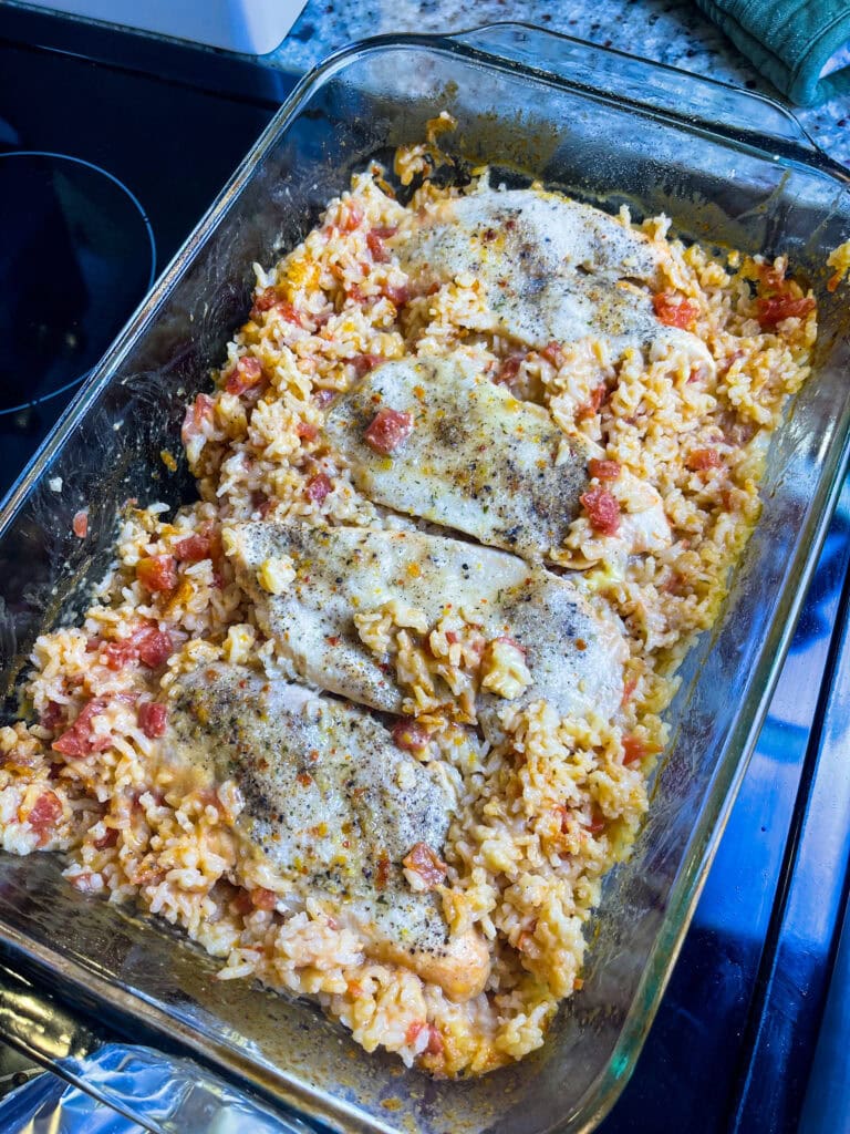 If your rice isn’t done but the chicken is, remove the chicken, cover the rice, and return it to the oven until tender.