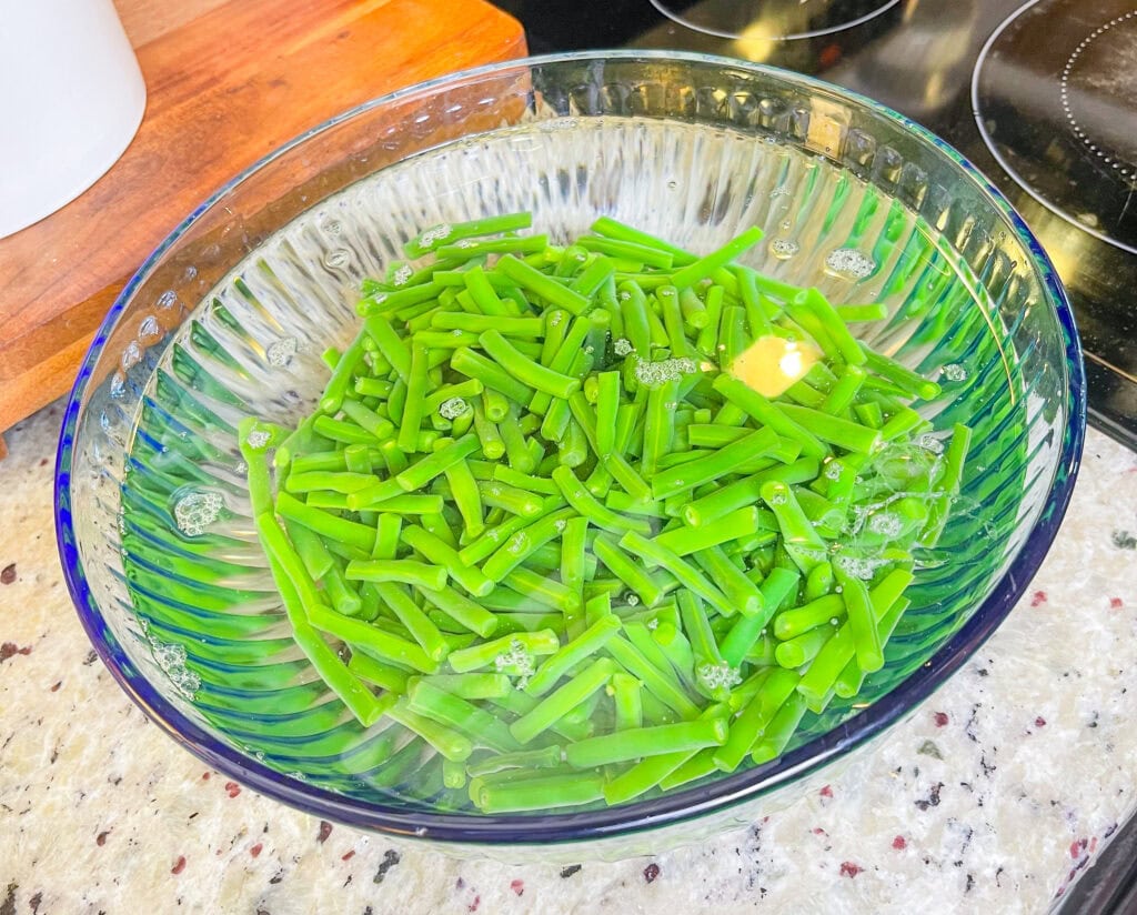 - 1 ½ lbs fresh green beans, cleaned and trimmed