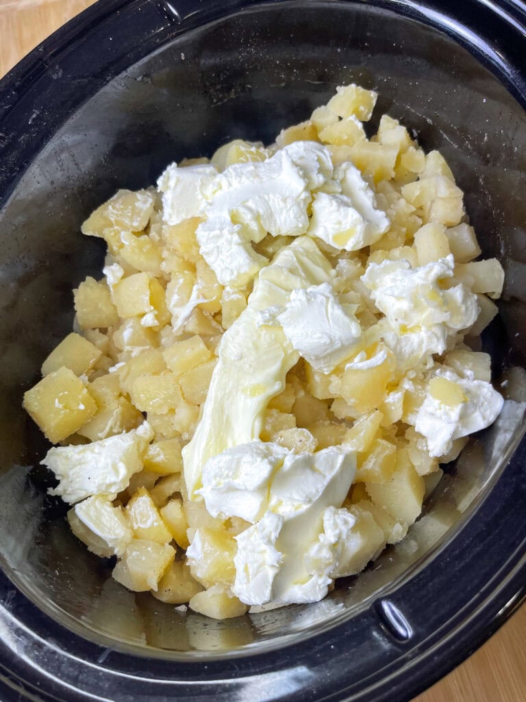 Cook the potatoes: Cover and cook on low for 6 hours or high for 3 hours, until potatoes are fork-tender.